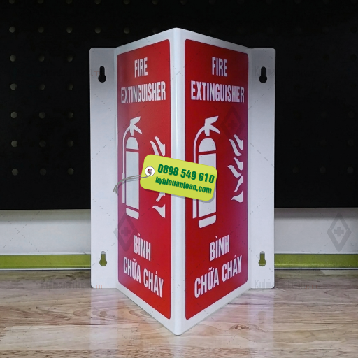 Bảng tam giác bình chữa cháy (Fire Extinguisher) in UV là sản phẩm biển báo PCCC giúp xác định nhanh vị trí bình chữa cháy trong các tòa nhà, nhà xưởng, văn phòng và khu công nghiệp. Với thiết kế gập chữ V hiển thị 2 mặt cùng màu sắc nổi bật, sản phẩm giúp người dùng dễ dàng nhận biết và xử lý kịp thời khi xảy ra sự cố cháy nổ.