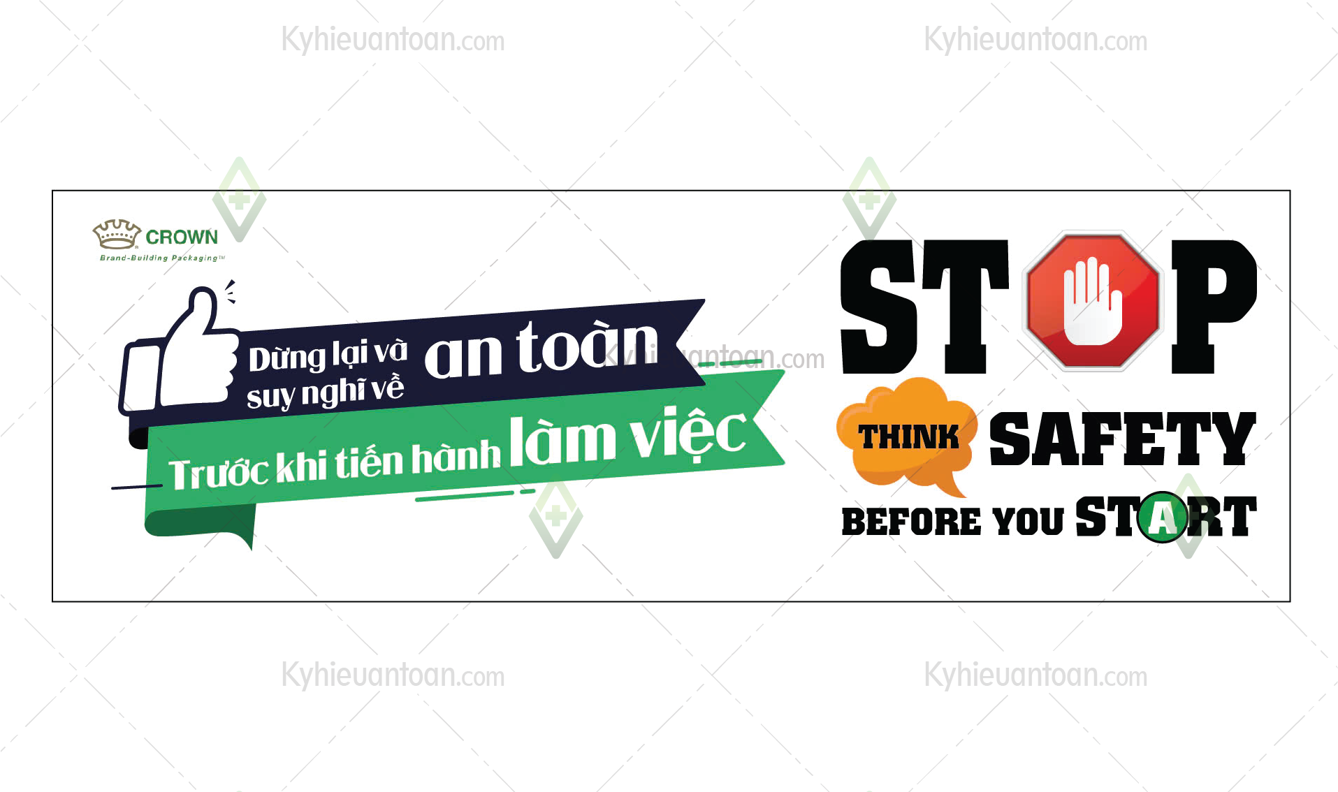 Banner dừng lại và suy nghĩ về an toàn trước khi tiến hành làm việc
