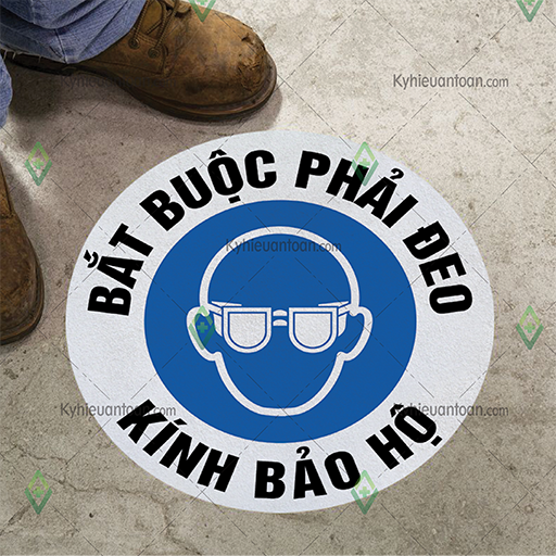 Tấm dán sàn bắt buộc đeo kính bảo hộ