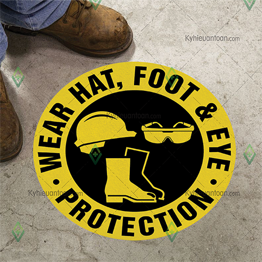 Tấm dán sàn phải đội mũ, giày & kính bảo hộ