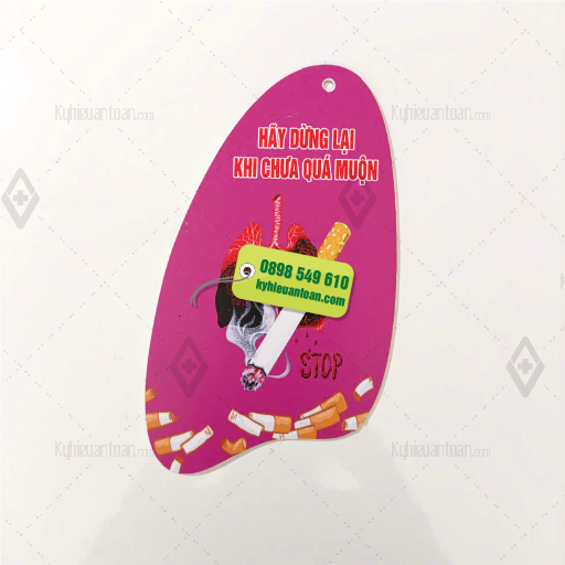 Thẻ hút thuốc hình dáng lá phổi có nội dung 2 mặt, decal dán lên formex
